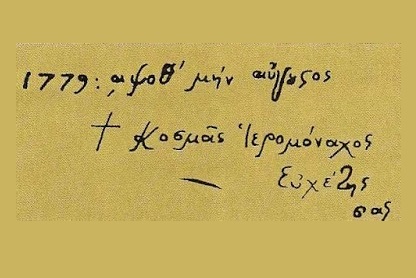 H υπογραφή του Αγίου Κοσμά λίγες ημέρες
