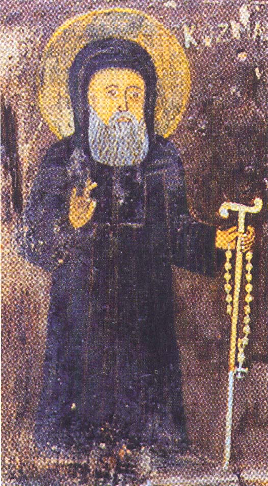 | Φορητή εικόνα του Αγίου Κοσμά,τεχνουργήθηκε εν Ζωή. Ιερός Ναός Αγίου Νικολάου Ζίτσας, 1767. πηγή: yaunatakabara.blogspot.gr |