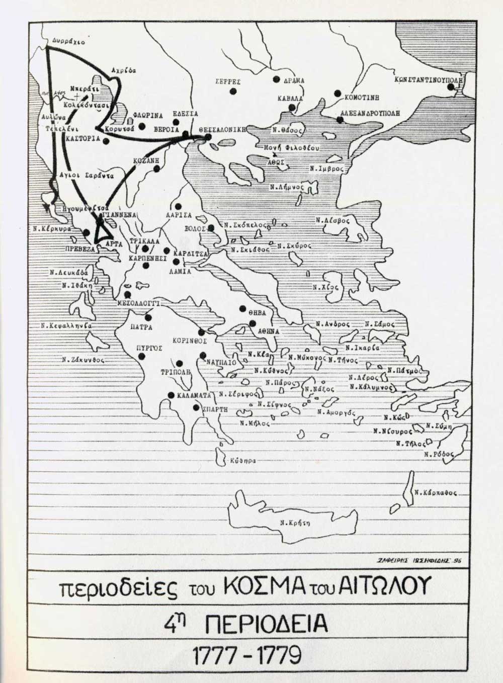 | Χάρτης της 4ης και τελευταίας περιοδείας του Αγίου Κοσμά του Αιτωλού. πηγή: www.nextdeal.gr |