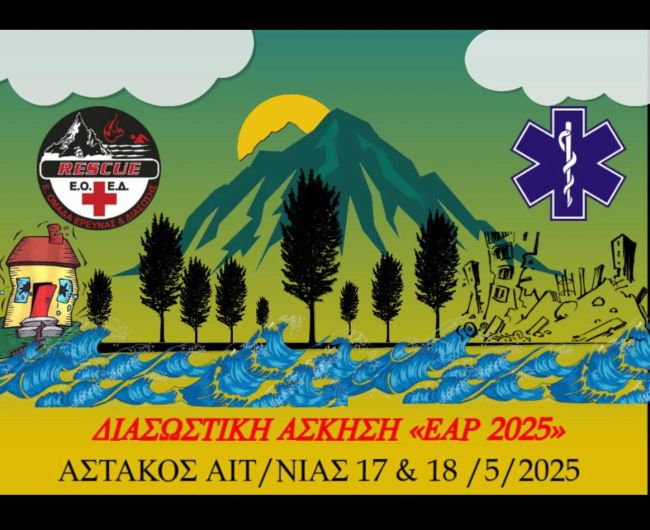 Σας προσκαλούμε όπως μας τιμήσετε με την παρουσία σας κατά την διεξαγωγή της Διασωστικής Άσκησης Συνεργασίας με την ονομασία «ΕΑΡ 2025», που θα πραγματοποιηθεί 17 και 18/05/2025 στον Αστακό από την νεοσυσταθείσα στον Αστακό ΕΘΕΛΟΝΤΙΚΗ ΟΜΑΔΑ ΕΡΕΥΝΑΣ ΚΑΙ ΔΙΑΣΩΣΗΣ (ΕΟΕΔ RESCUE), υπό την αιγίδα του Δήμου Ξηρομέρου και με στήριξη από την ΠΕΔ Δυτικής Ελλάδας.