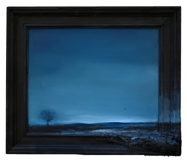 Τα τριάντα πέντε, μεγάλων κυρίως διαστάσεων, εκτιθέμενα έργα προσκαλούν τους επισκέπτες να περιηγηθούν σε κόσμους όπου το γαλάζιο του ουρανού συναντά το βαθύ μπλε της θάλασσας, γεννώντας σκέψεις και συναισθήματα.