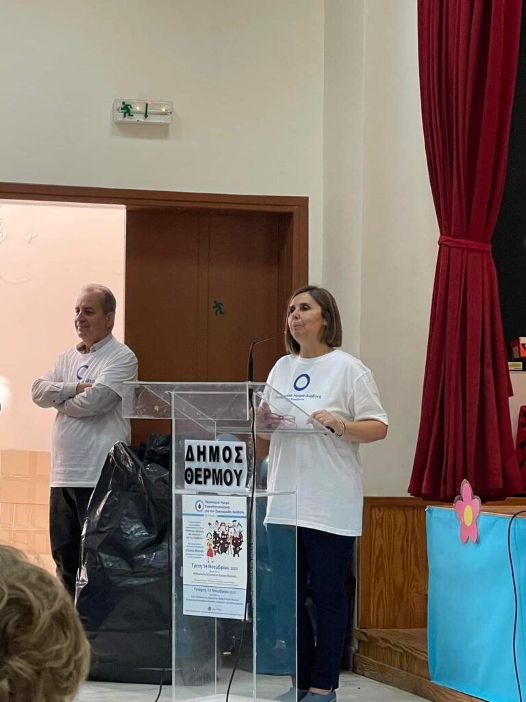 Την εκδήλωση χαιρέτησε η κ. Αγνίδη Σοφία μέλος του Κέντρου Πολιτισμού, Αθλητισμού και Περιβάλλοντος του Δήμου Θέρμου, ενώ ο κ. Χριστόπουλος Γεώργιος , Διευθυντής του Δημοτικού Σχολείου Θέρμου αναφέρθηκε στον σακχαρώδη διαβήτη κατά την παιδική ηλικία.