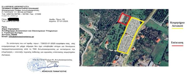‘ΟΤΙ ΜΕΧΡΙ ΣΗΜΕΡΑ ΔΕΝ ΕΧΕΙ ΥΠΟΒΛΗΘΕΙ ΑΙΤΗΜΑ ΓΙΑ ΔΙΕΝΕΡΓΕΙΑ ΠΡΑΓΜΑΤΟΓΝΩΜΟΣΥΝΗΣ ΑΠΟ ΤΟ ΤΕΕ ΑΙΤΩΛ/ΝΙΑΣ ΜΕ ΑΝΤΙΚΕΙΜΕΝΟ ΤΗΝ ΕΠΙΜΕΤΡΗΣΗ – ΣΥΝΤΑΞΗ ΤΕΧΝΙΚΗΣ ΕΚΘΕΣΗΣ ΓΙΑ ΕΡΓΑΣΙΕΣ ΕΠΕΚΤΑΣΗΣ ΚΟΙΜΗΤΗΡΙΟΥ ΑΣΤΑΚΟΥ’.