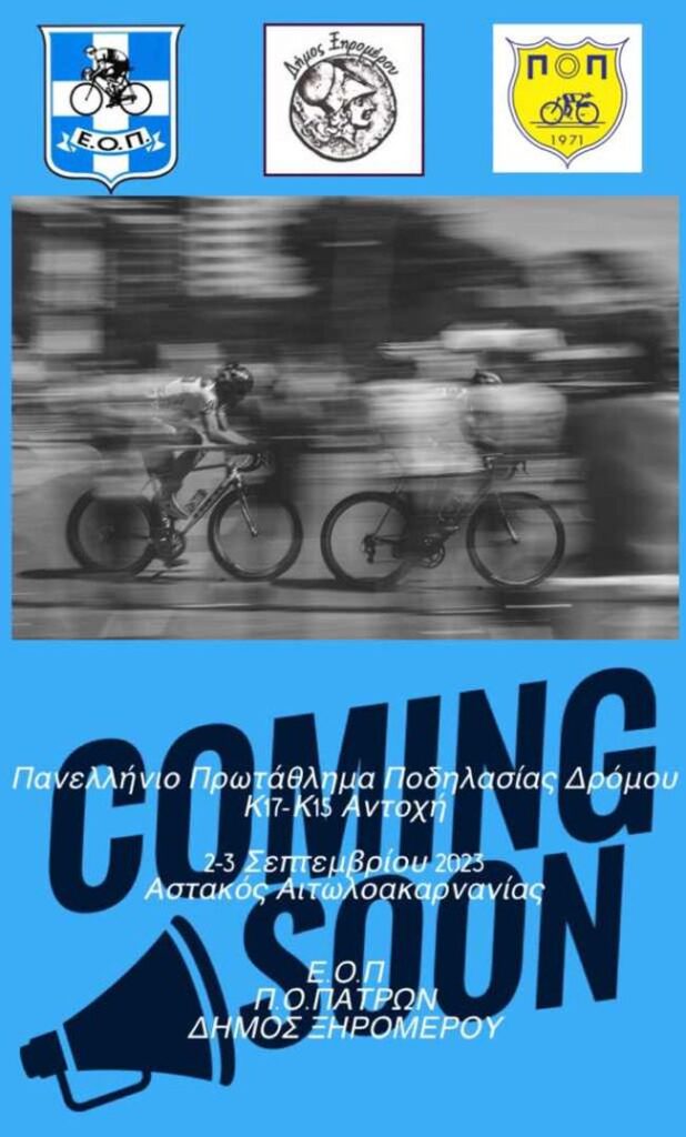 Ξεκινά από 1-3 Σεπτεμβρίου το Πανελλήνιο Πρωτάθλημα Ποδηλασίας Παμπαίδων – Παγκορασίδων & Παίδων – Κορασίδων, υπό την αιγίδα της Ελληνικής Ομοσπονδίας Ποδηλασίας, με συνδιοργανωτές τον Δήμο Ξηρομέρου, την Περιφέρεια Δυτικής Ελλάδας, την Περιφερειακή Ένωση Δήμων Δυτικής Ελλάδας και τον Ποδηλατικό Όμιλο Πάτρας (Π.Ο. Πατρών).