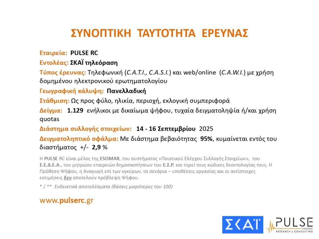 Δημοσκόπηση PULSE: Στο 24% η ΝΔ, δεύτερο το ΠΑΣΟΚ και οκτακομματική Βουλή. Ποιά η άποψη των πολιτών για τις εξαγγελίες Μητσοτάκη στη ΔΕΘ;