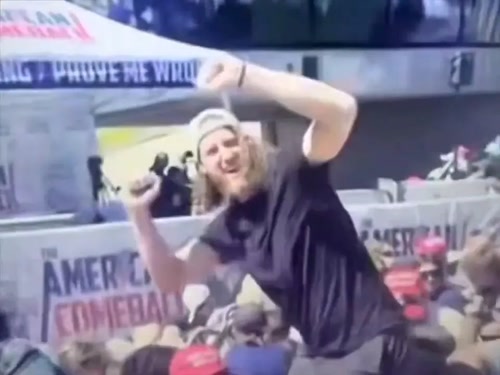 Ο άνδρας ακούγεται να φωνάζει «USA, USA, USA!», επαναλαμβάνοντας το σύνθημα του προέδρου των ΗΠΑ, Ντόναλντ Τραμπ, μετά την απόπειρα δολοφονίας εναντίον του σε προεκλογική συγκέντρωση στο Μπάτλερ της Πενσιλβάνια το περασμένο καλοκαίρι.
