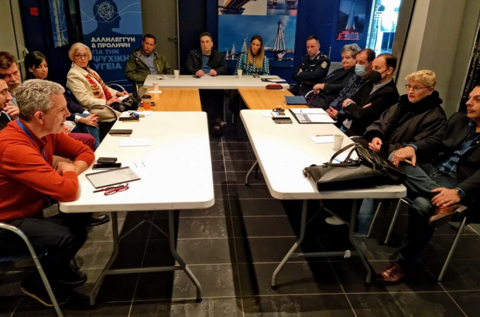 Στη συνάντηση συμμετείχαν: ο Διευθύνων Σύμβουλος της ΓΕΦΥΡΑ Α.Ε. κ. Πάνος Λούκας, ο Λιμενάρχης Πατρών, κ. Λάζαρος Χανουμίδης, ο Αστυνομικός Διευθυντής Αιτωλίας, κ. Απόστολος Καπνιάρης, η Προϊσταμένη Διεύθυνσης Δημόσιας Υγείας, κ. Γεωργία Μπαπούζα, ο κ. Ρήγας Γεώργιος, ψυχίατρος, Επιμελητής Α΄ ΕΣΥ, επιστημονικά υπεύθυνος Κέντρου Ψυχικής Υγείας Πάτρας, Γενικού Νοσοκομείου Άγιος Ανδρέας Πατρών, ο κ. Τάσος Αρνιακός, κοινωνικός λειτουργός Κέντρου Ψυχικής Υγείας Πάτρας, Γενικού Νοσοκομείου Άγιος Ανδρέας Πατρών, η κ. Γεωργία Κουτσογιαννοπούλου, ψυχολόγος Κέντρου Ψυχικής Υγείας Δυτικής Ελλάδος (ΚΕΚΟΙΨΥ), ο κ. Μανώλης Σουρής, ψυχολόγος Κέντρου Ψυχικής Υγείας Δυτικής Ελλάδος (ΚΕΚΟΙΨΥ), η Πρόεδρος Συλλόγου Οικογενειών για την Ψυχική Υγεία (ΣΟΨΥ), κ. Χριστίνα Μπίκου, ο κ. Δημήτρης Θεοδωρόπουλος, Κοινωνικός Λειτουργός / Γενικός Διευθυντής στο Κοινωφελές Σωματείο Αρωγής και Φροντίδας Ηλικιωμένων και Ατόμων με Αναπηρία «ΦΡΟΝΤΙΖΩ», η κ. Χαρά Γουλιάμη, Ψυχολόγος του Σωματείου ΙΚΕΛΟΣ (Σωματείο Πρόληψης και Προαγωγής της Ψυχικής Υγείας), ο κ. Γρηγόρης Παναγιωτόπουλος, Διοικητικός Διευθυντής Συλλόγου ΑμεΑ «ΑΛΚΥΟΝΗ», η κα. Χρηστιά ,Ψυχολόγος Συλλόγου ΑμεΑ «ΑΛΚΥΟΝΗ» και η κα. Κατερίνα Δημητροπούλου, Ιατρός, μέλος Γηριατρικής και Γεροντολογικής εταιρείας.
