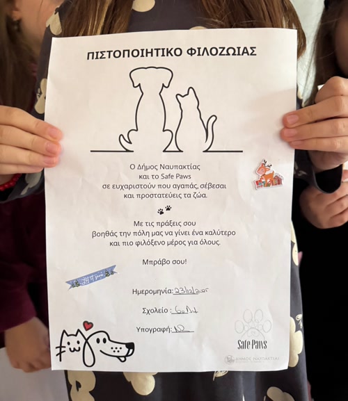 Ο Δήμος Ναυπακτίας ενημερώνει ότι, το Τμήμα Αδέσποτων Ζώων Συντροφιάς «Safe Paws» υλοποίησε δράση ευαισθητοποίησης για τα αδέσποτα ζώα, με τη συμμετοχή δημοτικών σχολείων της περιοχής και συγκεκριμένα του 3ου, 4ου και 6ου Δημοτικού Σχολείου Ναυπάκτου, από τις 18 έως τις 23 Δεκεμβρίου 2025.