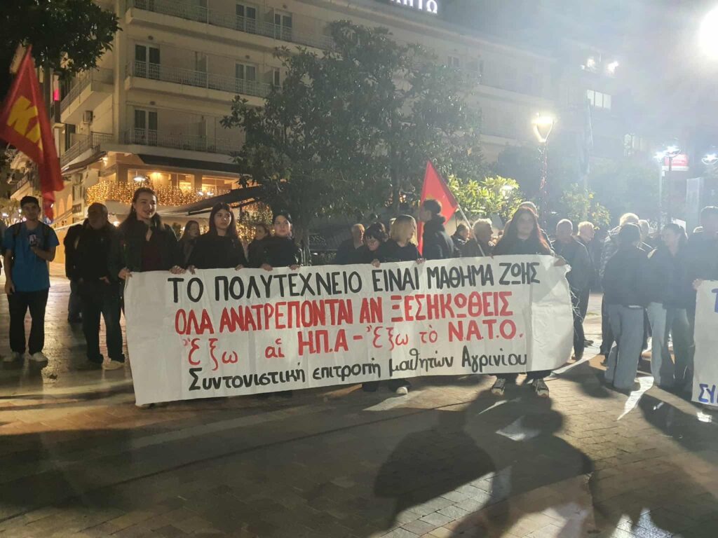 Το Εργατικό Κέντρο Αγρινίου τίμησε την 52η επέτειο του Πολυτεχνείου με συγκέντρωση σήμερα, Δευτέρα 17 Νοέμβρη 2025 στην κεντρική πλατεία Αγρινίου. Tοποθετήθηκαν ο πρόεδρος του Δ.Σ. του Εργατικού Κέντρου Κώστας Παπακωνσταντίνου, η Αρτέμις Κρικέλη, μέλος του 15μελους του 6ου Γενικού Λυκείου και ο Γιώργος Λουκόπουλος, πρόεδρος του φοιτητικού συλλόγου ΕΤΤ/ΔΕΑΠΤ. Αμέσως μετά τις ομιλίες ακολούθησε πορεία στο κέντρο της πόλης και κατάθεση στεφάνων