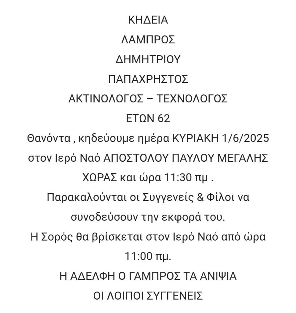 Δυστυχώς έφυγε o Λάμπρος Παπαχρήστος, πρωτοπόρος Τεχνολόγος Ακτινολογίας -Ραδιολογίας που πρόσφερε τόσα πολλά στο Νοσοκομείο Αγρινίου και στο σύνολο των πολιτών του Αγρινίου!
