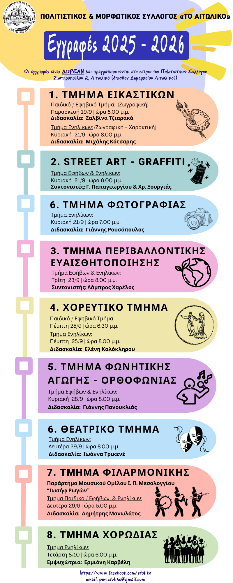 Εγγραφές 2025 – 2026 στα Τμήματα του Πολ. & Μορφ. Συλ. “Το Αιτωλικό”