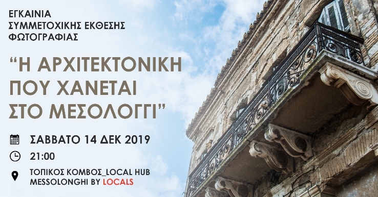 Η ομάδα Αρχιτεκτονικής του Messolonghi By Locals σας προσκαλεί στα εγκαίνια της συμμετοχικής έκθεσης φωτογραφίας με τίτλο “ Η Αρχιτεκτονική που χάνεται στο Μεσολόγγι”