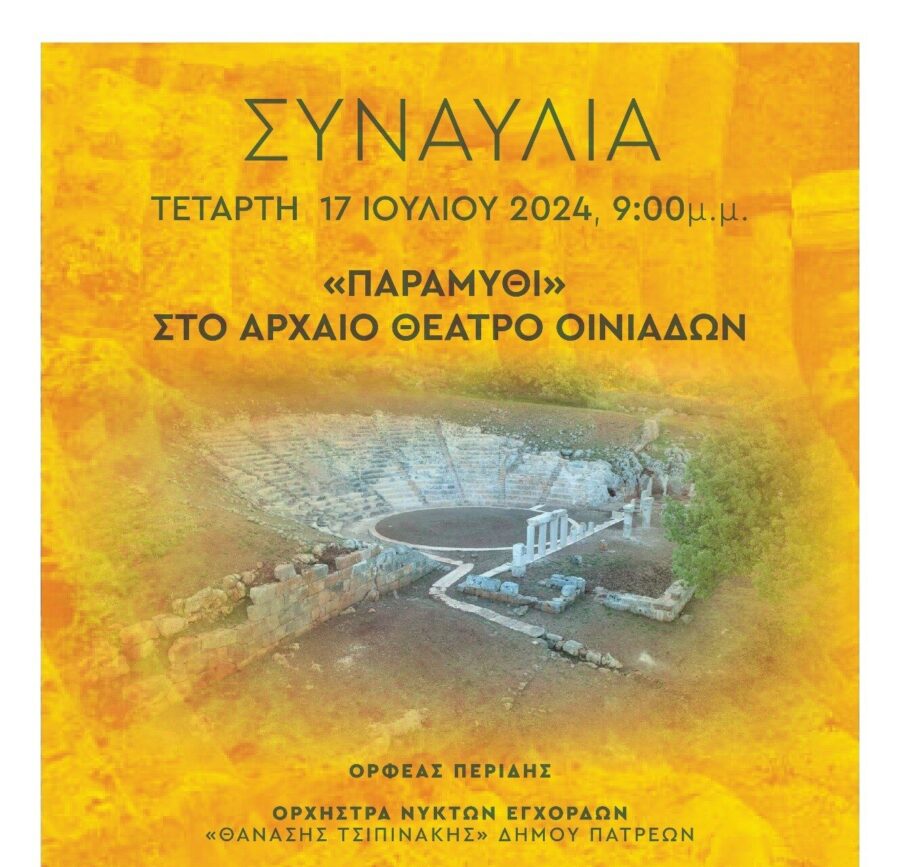 Η Περιφέρεια Δυτικής Ελλάδας και η Ειδική Υπηρεσία Διαχείρισης Προγράμματος «ΔΥΤΙΚΗ ΕΛΛΑΔΑ», σε συνεργασία με την Εφορεία Αρχαιοτήτων Αιτωλοακαρνανίας και Λευκάδος διοργανώνουν τελετή εγκαινίων για το έργο «Στερέωση, Αποκατάσταση και ανάδειξη αρχαίου θεάτρου Οινιαδών» που θα πραγματοποιηθεί το βράδυ της Τετάρτης 17 Ιουλίου 2023 και ώρα 21:00 στο αρχαίο θέατρο.