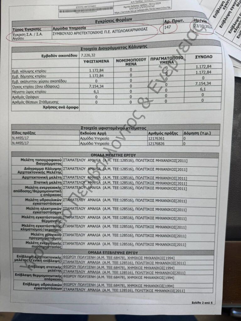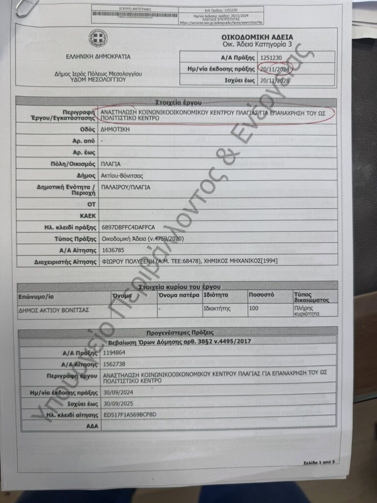 ΥΓ 2 : Χωρίς μελέτες στατικές , μηχανολογικές και άδεια του αρμόδιου ΣΑ τι ακριβώς συμβασιοποιησατε ; Άλλωστε η οικοδομική άδεια βγήκε στις 20-11-2024 τότε ήταν ώριμο το έργο για δημοπράτηση του , αντίγραφο της οποίας ύπαρχει παρακάτω στις φωτογραφίες!