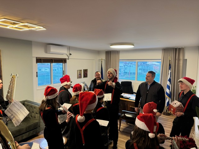 Με τον καλύτερο τρόπο ξεκίνησε η νέα εβδομάδα στο Δημαρχείο Ιερής Πόλης Μεσολογγίου, αφού τα μέλη του Μουσικού Ομίλου «Ιωσήφ Ρωγών», συνοδευόμενα από τον Αρχιμουσικό κ. Δημήτρη Μανωλάτο, επισκέφθηκαν το γραφείο του Δημάρχου κ. Σπύρου Διαμαντόπουλου για να ψάλλουν τα χριστουγεννιάτικα κάλαντα και άλλες εορταστικές μελωδίες, σήμερα Δευτέρα, 23 Δεκεμβρίου 2024.