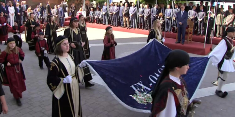 Ακολούθησε η επίσημη Δοξολογία, προεξάρχοντος του Μητροπολίτου Αιτωλίας και Ακαρνανίας κ. Δαμασκηνού, παρουσία του Εξοχωτάτου Προέδρου της Ελληνικής Δημοκρατίας κ. Κωνσταντίνου Τασούλα.