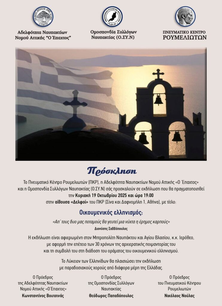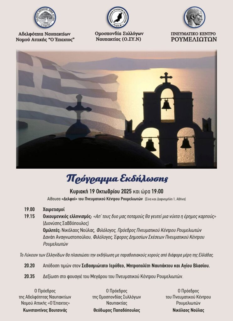 Το Πνευματικό Κέντρο Ρουμελιωτών (ΠΚΡ), η Αδελφότητα Ναυπακτίων Νομού Αττικής «Ο