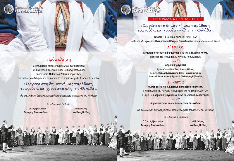 Εκδήλωση από το Πνευματικό Κέντρο Ρουμελιωτών