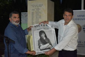 Η εκδήλωση ολοκληρώθηκε με την απονομή τιμητικής αναμνηστικής πλακέτας στον κ. Σταθά, την οποία παρέδωσε ο Δήμαρχος Αμφιλοχίας Γιώργος Κατσούλας.