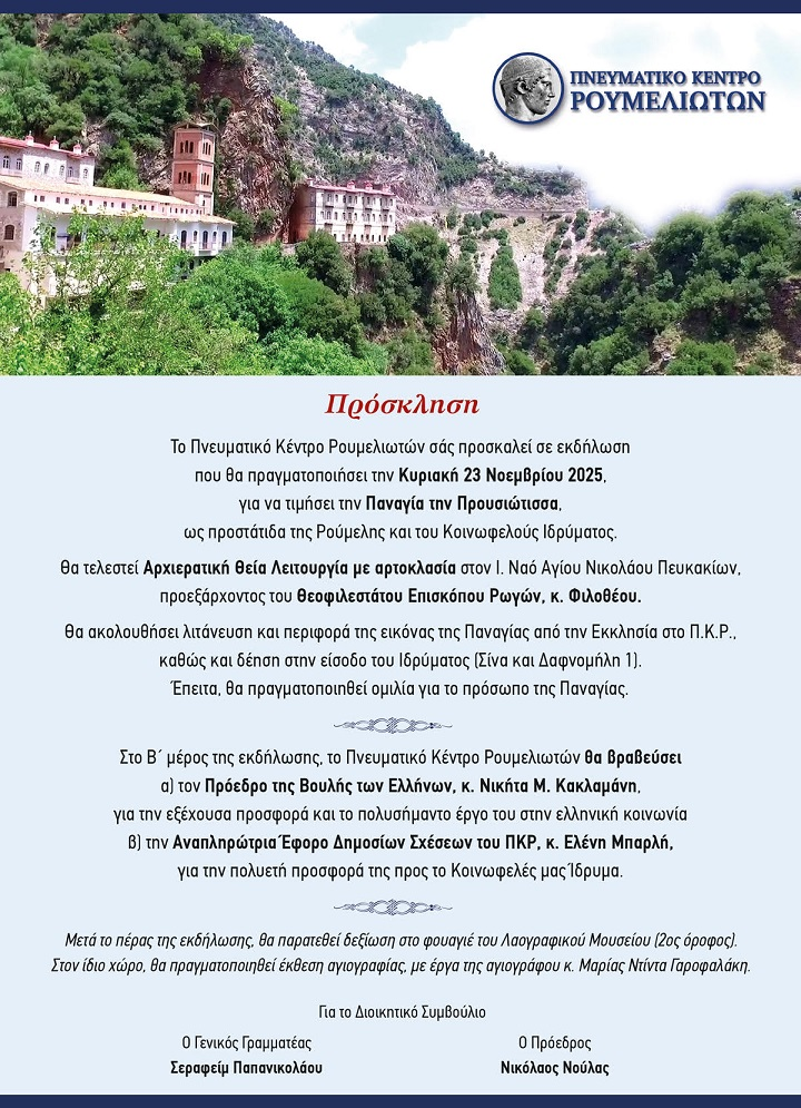 Εκδήλωση προς τιμήν της Παναγίας Προυσιώτισσας από το Πνευματικό Κέντρο Ρουμελιωτών