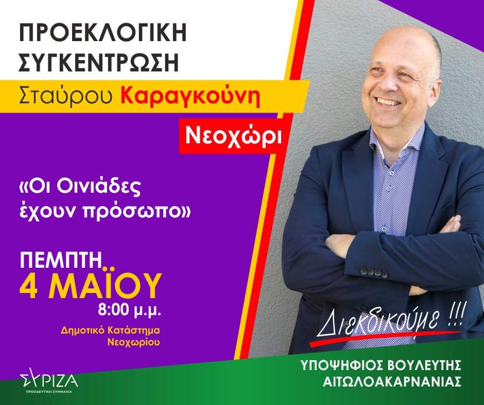 Ο Σταύρος Καραγκούνης καλεί στη συγκέντρωσή του στο Νεοχώρι.