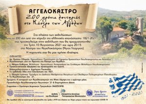 Στο πλαίσιο των εκδηλώσεων για τα 200 χρόνια από την έναρξη της Ελληνικής Επανάστασης, η Διεθνής Αδελφότητα Απογόνων των Ελεύθερων Πολιορκημένων Μεσολογγίου  με την Κοινότητα Αγγελοκάστρου, την Εφορεία Αρχαιοτήτων Αιτωλοακαρνανίας και Λευκάδος και τον Δήμο Αγρινίου, διοργανώνουν επετειακή εκδήλωση στις 10 Αυγούστου 2021 και ώρα 20:15.