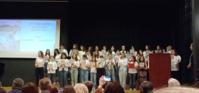 Το 6ο Γυμνάσιο Αγρινίου παρουσίασε δράσεις που υλοποιήθηκαν στο σχολείο στα πλαίσια μείωσης της εκπαιδευτικής ανισότητας και περιθωριοποίησης, με την εκπαιδευτικό κ. Ανδρομανέτσικου Χρυσούλα, καθώς και δραματοποίηση αποσπάσματος από μαθητές, από το βιβλίο του Β. Χριστόπουλου ΄΄Ρομανό Τσορουπέ΄΄. Επιπλέον μας έδωσε την ευκαιρία να ταξιδέψουμε με τα υπέροχα τραγούδια που είχε ετοιμάσει η χορωδία του σχολείου!