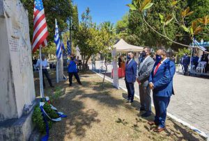 Εν συνεχεία έγινε κατάθεση στεφάνων και ακούστηκαν οι εθνικοί ύμνοι Αμερικής και Ελλάδας.
