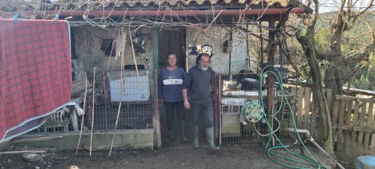 Ο Νικόλαος Νικολούλιας και η σύζυγός του Αικατερίνη δύο κτηνοτρόφοι που είδαν την περασμένη Κυριακή του σπίτι τους να καίγεται στην Καλλιθέα του Δήμου Ανδρίτσαινας – Κρεστένων, ζουν πλέον κάτω από πολύ δύσκολες συνθήκες και κανείς δεν γνωρίζει τι θα γίνει με αυτούς τους ανθρώπους σε περίπτωση μιας βροχής.
