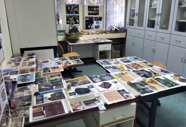 Από σήμερα Παρασκευή η μικρή μας έκθεση 95 μετεωριτών, που έπεσαν σε 65 διαφορετικά μέρη του κόσμου, θα φιλοξενείται στον βοηθητικό χώρο του Εργαστηρίου Φυσικών επιστημών του σχολείου μας [3ο ΓΕΛ Αγρινίου], στο πλαίσιο του προγράμματος διασχολικής συνεργασίας Αστρονομίας 2022-2023.