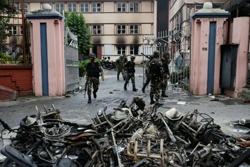 Ο στρατός του Νεπάλ ανακοίνωσε ότι αναλαμβάνει την ευθύνη για τη διατήρηση της τάξης και της ασφάλειας, καλώντας τους πολίτες να σταματήσουν τους εμπρησμούς και τις λεηλασίες. Το ανώτατο στρατιωτικό επιτελείο διαβεβαίωσε ότι στρατεύματα θα αναπτυχθούν στους δρόμους ώστε να σταματήσει το χάος ενώ κατηγόρησε τους διαδηλωτές ότι εκμεταλλεύονται την κατάσταση για να προκαλέσουν ζημιές και λεηλασίες.