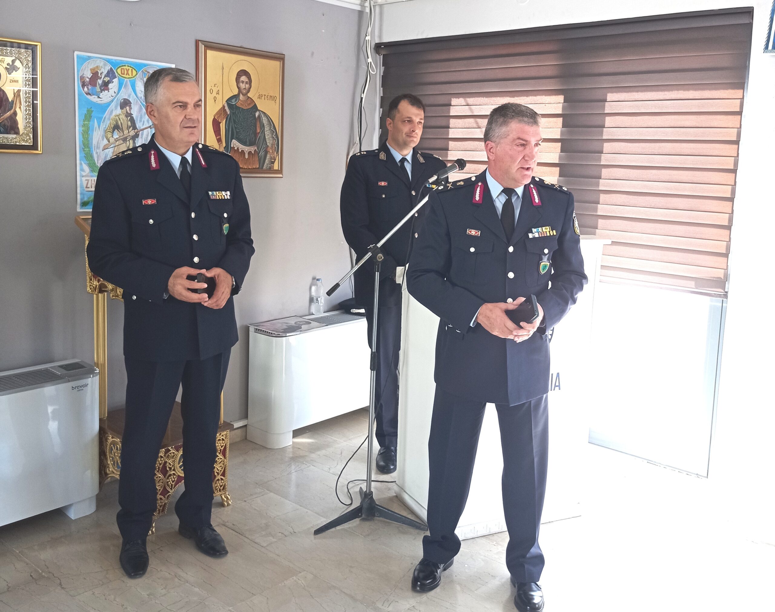 Στην εκδήλωση που πραγματοποιήθηκε στην έδρα της Γενικής Περιφερειακής Αστυνομικής Διεύθυνσης Δυτικής Ελλάδας, στην Πάτρα, πραγματοποίησε χαιρετισμό ο Γενικός Περιφερειακός Αστυνομικός Διευθυντής, Υποστράτηγος Θεόδωρος Τσάτσαρης, ο οποίος δήλωσε μεταξύ άλλων: