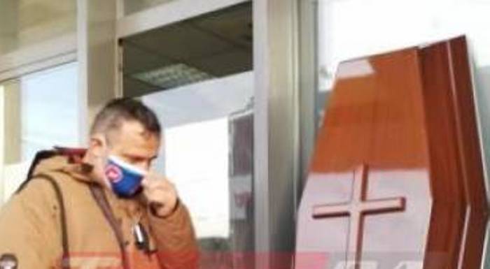 Φέρετρο τοποθέτησαν στην είσοδο του κτιρίου της ΔΕΗ στην Ακτή Δυμαίων στην Πάτρα, μέλη της διοίκησης του εργατικού κέντρου Πάτρας.