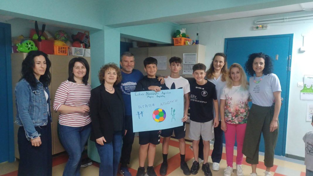 Από την Κ-14 της Ένωσης, το “παρών” έδωσαν οι ποδοσφαιριστές της ομάδας, Άλκης Παπαδημητρίου, Μάξιμος Σκαρτσάρης και Γιώργης Κουβαράς. Τα παιδιά του Συλλόγου, πρόσφεραν στα παιδιά του Ειδικού Σχολείου, μπάλα ποδοσφαίρου, ενώ αντίστοιχα έλαβαν μια υπέροχη ζωγραφιά με το μήνυμα για αγάπη και αποδοχή.