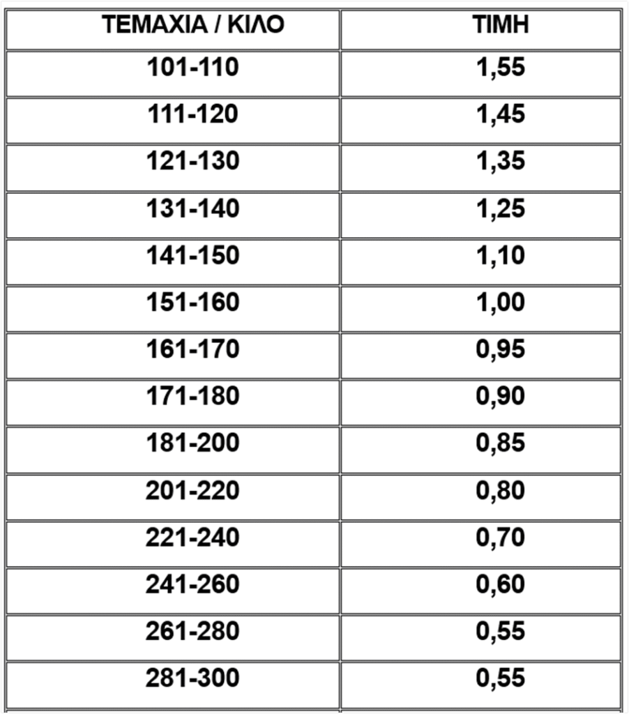 Ο τιμοκατάλογος διαμορφώνεται ως εξής: