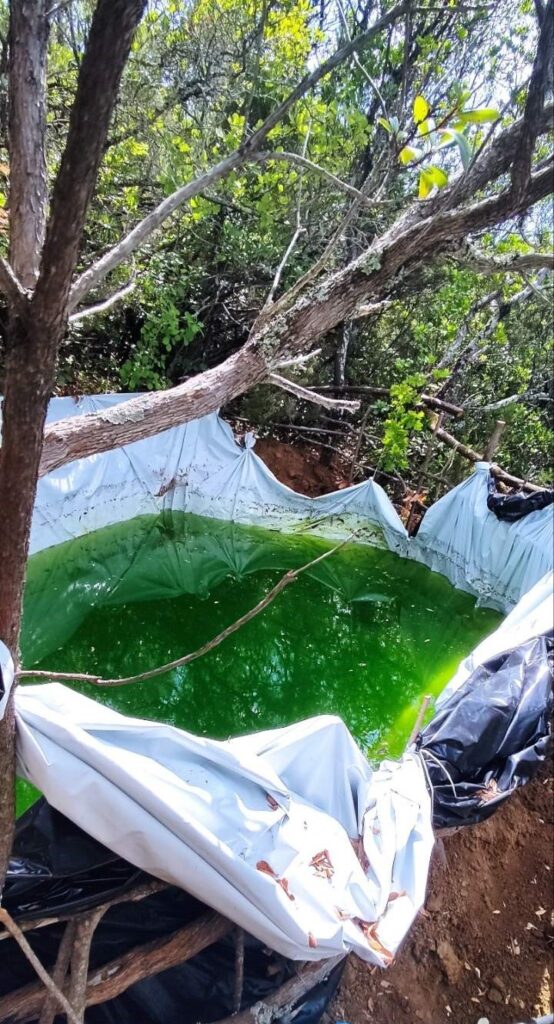Στους χώρους της καλλιέργειας υπήρχαν διάσπαρτα καλλιεργητικά εργαλεία, αρδευτικός εξοπλισμός, λιπάσματα και λοιπά αντικείμενα, που χρησίμευαν στην καλλιέργεια των φυτών κάνναβης, τα οποία ποτίζονταν με πλαστικά λάστιχα μήκους περίπου -1,5- χιλιομέτρων, που ήταν συνδεδεμένα σε δύο αυτοσχέδιες δεξαμενές.