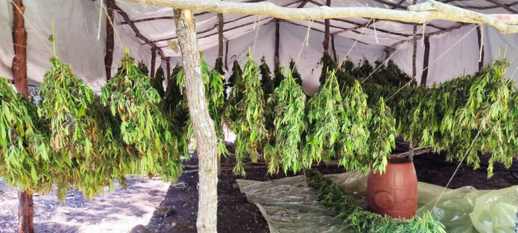 Η φυτεία αποτελούνταν από -14- ειδικά διαμορφωμένους χώρους, συνολικής έκτασης -4- στρεμμάτων περίπου, ενώ οι κατηγορούμενοι είχαν εγκαταστήσει αυτοσχέδιο ξηραντήριο κάνναβης και παράπηγμα με σκηνές, όπου ανευρέθηκαν τρόφιμα και είδη ένδυσης – υπόδησης στο εσωτερικό τους.