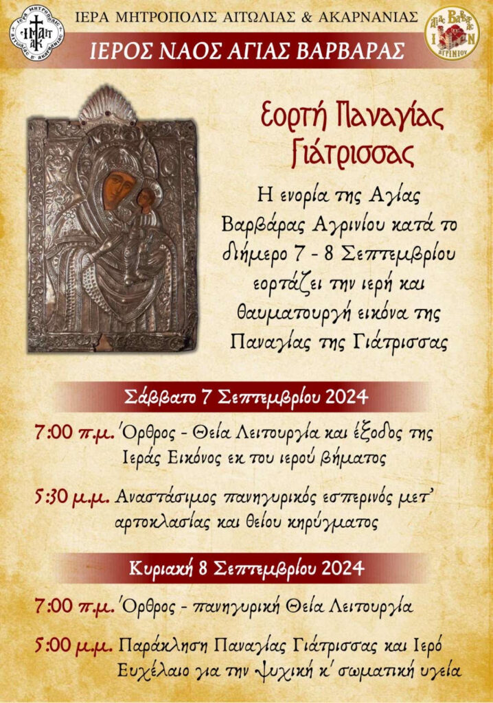 Εορτή Παναγίας Γιάτρισσας  στην Αγία Βαρβάρα Αγρινίου