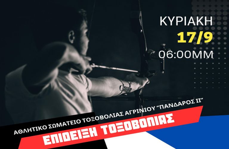 Την Κυριακή, 17 Σεπτεμβρίου και ώρα 6:00 μ.μ. θα πραγματοποιηθεί στον αύλειο χώρο του τσιμεντένιου κτιρίου των Καπναποθηκών Παπαστράτου επί της Οδού Αναστασιάδη, η πρώτη επίδειξη τοξοβολίας του Αθλητικού Σωματείου Τοξοβολίας Αγρινίου «ΠΑΝΔΑΡΟΣ ΙΙ».