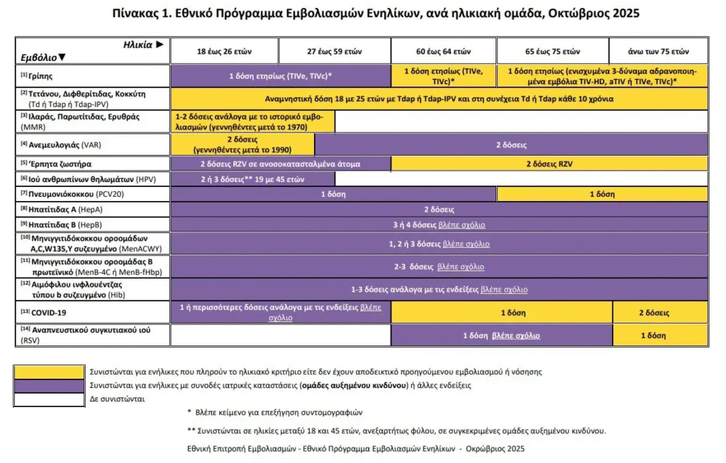 Εθνικό πρόγραμμα εμβολιασμών 2025: Όλες οι αλλαγές σε γρίπη, κορωνοϊό, HPV και RSV