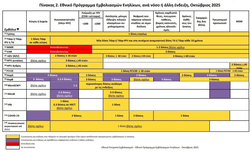 Οι αλλαγές αυτές αποτυπώνουν τη μετατόπιση του προγράμματος σε μια πιο “εξατομικευμένη” προσέγγιση εμβολιασμού, με βάση την ηλικία, τα υποκείμενα νοσήματα και την ανοσολογική κατάσταση κάθε ατόμου.