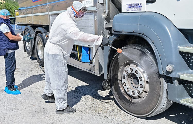 Στα παραπάνω σημεία θα βρίσκεται κατά τις ώρες 07.00 έως τις 13.00 συνεργείο που θα πραγματοποιεί απολυμάνσεις σε αυτοκίνητα μεταφοράς ζώντων ζώων (όταν επιτρέπεται η μεταφορά με βάση τα ισχύοντα περιοριστικά μέτρα), γάλακτος και ζωοτροφών και θα εκδίδεται βεβαίωση απολύμανσης.