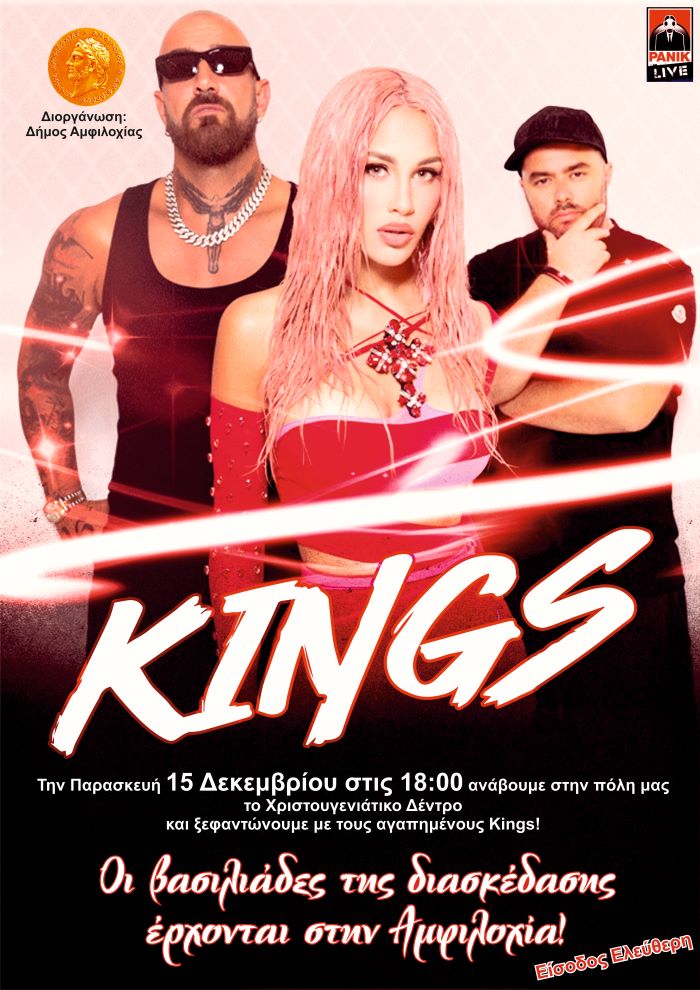 Την Παρασκευή 15 Δεκεμβρίου στις 18:00 στην κεντρική πλατεία Αμφιλοχίας, ανάβουμε το χριστουγεννιάτικο δέντρο της πόλης μας και υποδεχόμαστε τους βασιλιάδες της διασκέδασης Kings σε μια «δυνατή» συναυλία γεμάτη κέφι! Τους μικρούς μας φίλους τους περιμένουν παιχνίδια, κατασκευές και χειροτεχνίες, facepainting, πάνελ φωτογράφισης και πολλές άλλες εκπλήξεις!