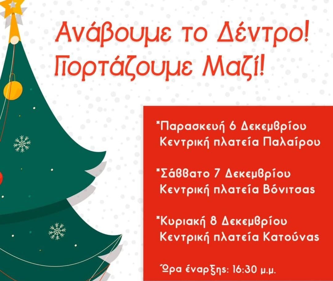 Ο Δήμος Ακτίου – Βόνιτσας σας προσκαλεί στις χριστουγεννιάτικες εκδηλώσεις για την φωταγώγηση του χριστουγεννιάτικου δέντρου.