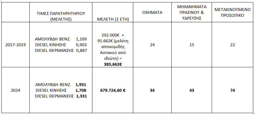 (16.000€ μηνιαίως με μισές τιμές καυσίμων, χωρίς προσωπικό, χωρίς φορτηγά, με ελάχιστα μηχανήματα πρασίνου, με ιδιώτες στην αποκομιδή απορριμμάτων και τους καθαρισμούς).