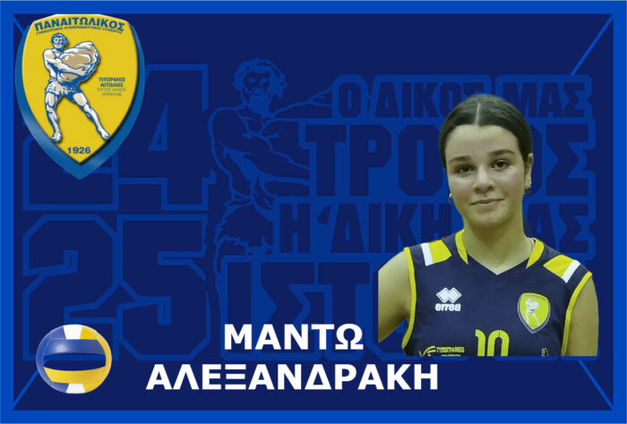 Το Διοικητικό Συμβούλιο του Γ.Φ.Σ. ΠΑΝΑΙΤΩΛΙΚΟΥ βρίσκεται στην ευχάριστη θέση να ανακοινώσει την προώθηση στην πρώτη ομάδα του τμήματος πετοσφαίρισης της αθλήτριας Μαντώς Αλεξανδράκη.