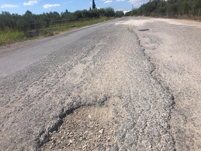 Λακκούβες, σε πολλά σημεία, όπου τα οχήματα, πέφτοντας σε αυτές, και τραντάζονται με σφοδρότητα. Χτυπήματα, τα οποία στην καλύτερη περίπτωση μπορεί να προκαλέσουν υλικές ζημιές, ενώ στη χειρότερη, μπορεί να προκαλέσουν τροχαίο!