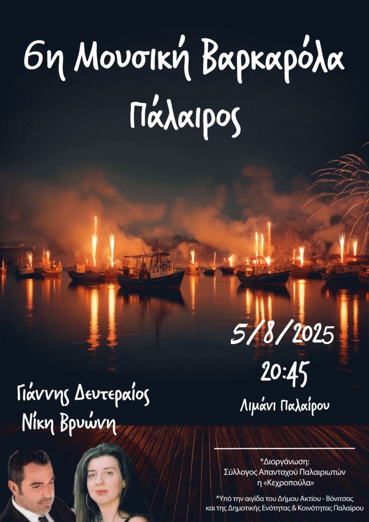 Για 6η χρονιά θα πραγματοποιηθεί στην Πάλαιρο στις 05/08/2024 και ώρα 20:45 η καθιερωμένη εκδήλωση της Βαρκαρόλας.