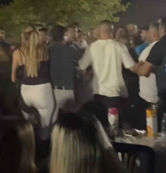 Κατά τη διάρκεια της άγρια συμπλοκής «έφευγαν» στον αέρα τραπέζια, καρέκλες και μπουκάλια ενώ η τραγουδίστρια προσπαθούσε από τη σκηνή να ηρεμήσει τα πνεύματα.