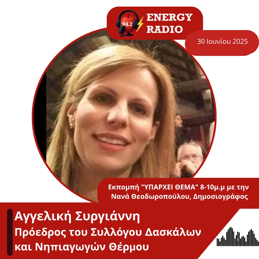 Στον ραδιοφωνικό σταθμό energy 94.2 και στην εκπομπή «ΥΠΑΡΧΕΙ ΘΕΜΑ» με την δημοσιογράφο Νανά Θεοδωροπούλου μίλησε η Πρόεδρος του Συλλόγου Δασκάλων, Αγγελική Συργιάννη σχετικά με τις μετακινήσεις μαθητών στα δημοτικά και την πρόθεση του Υπουργείου Παιδείας να προχωρήσει στην συγχώνευση τμημάτων στην Πρωτοβάθμια Εκπαίδευση με την έναρξη της νέας σχολικής χρονιάς 2025-2026